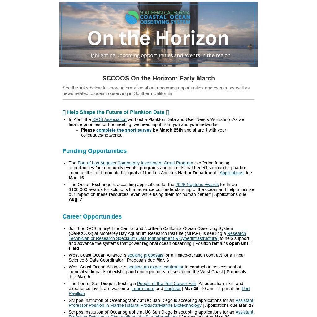 SCCOOS On the Horizon: Early March |