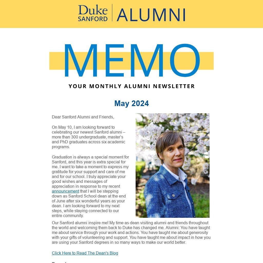 Graduation is always a special moment for Sanford, and this year is extra special for me. I want to take a moment to express my gratitude for your support and care of me and for our school. I truly appreciate your good wishes and messages of appreciation in response to my recent announcement that I will be stepping down as Sanford School dean at the end of June after six wonderful years as your dean. I am looking forward to my next steps, while staying connected to our entire community.