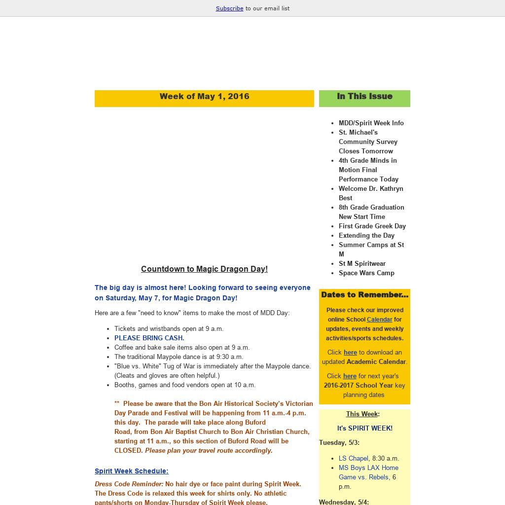 - Saturday, May 7: Magic Dragon Day! Wear your MDD T-Shirt!