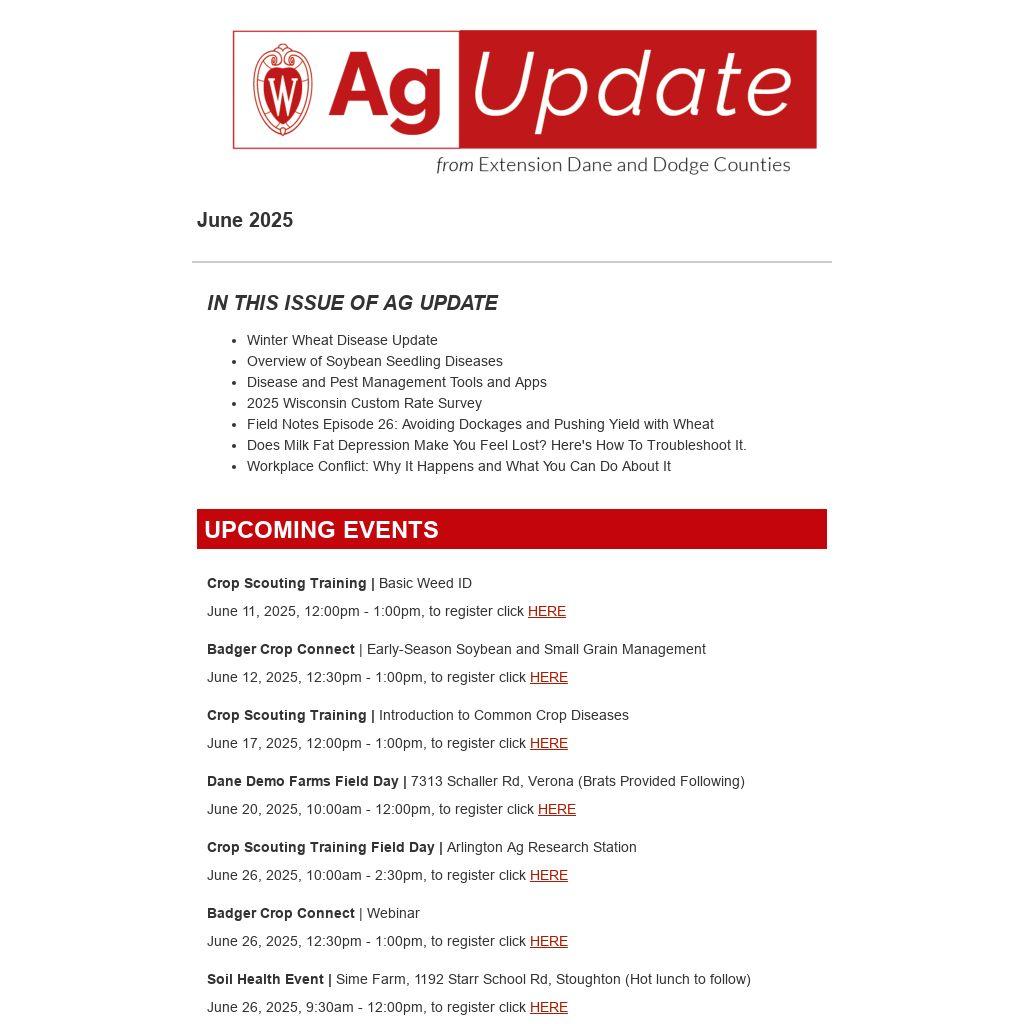 Badger Crop Connect | Early-Season Soybean and Small Grain Management June 12, 2025, 12:30pm - 1:00pm, to register click HERE