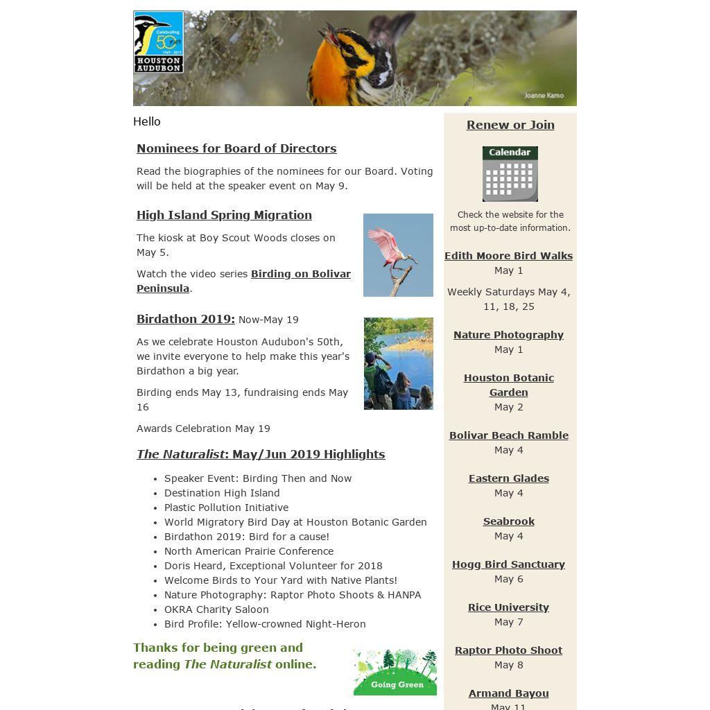 As we celebrate Houston Audubon's 50th, we invite everyone to help make this year's Birdathon a big year.