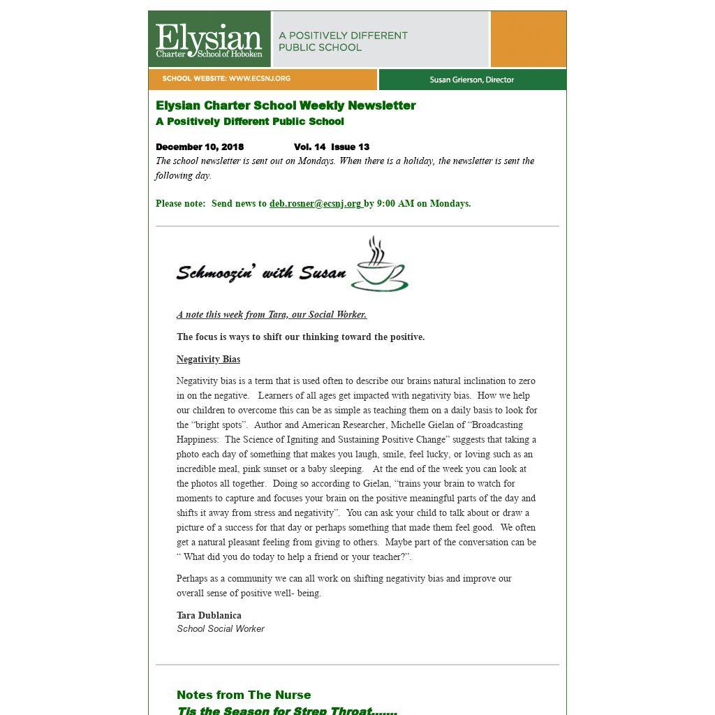 The school newsletter is sent out on Mondays. When there is a holiday, the newsletter is sent the following day.