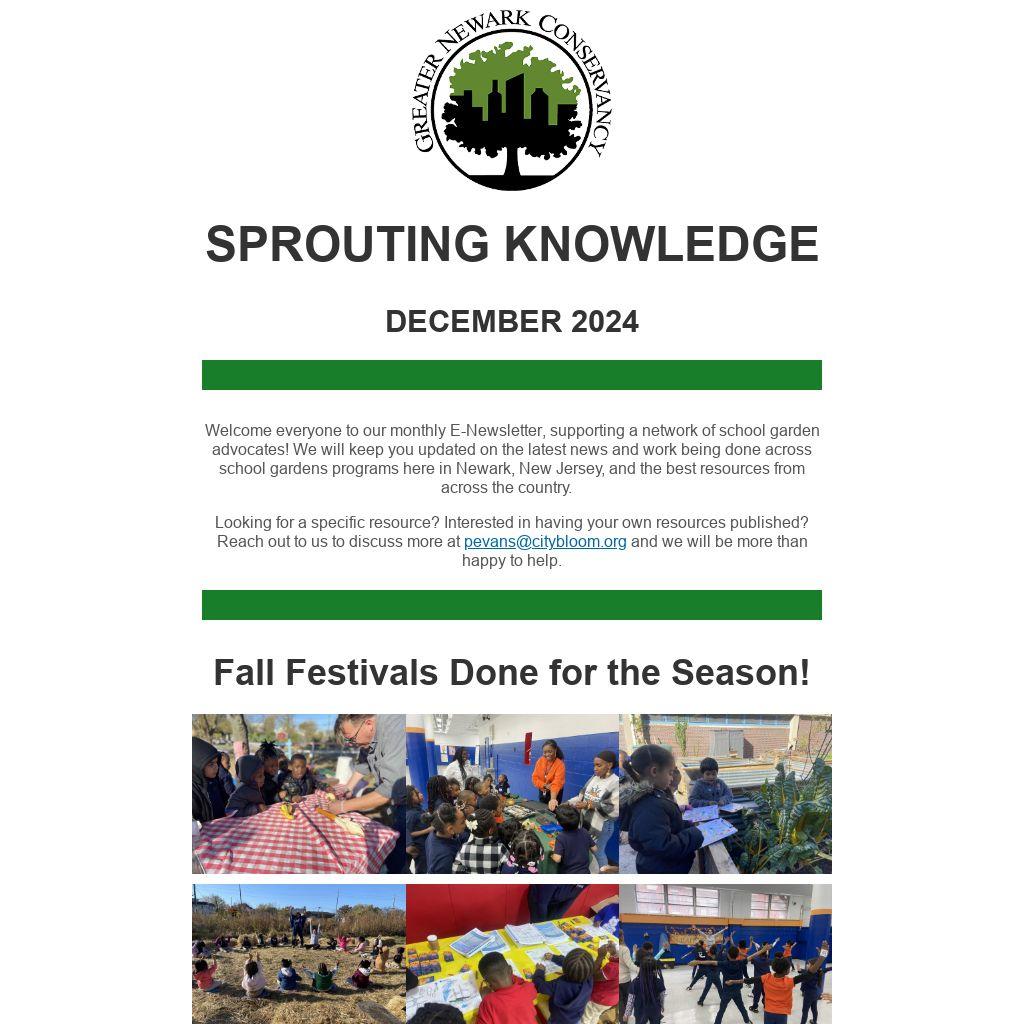 Welcome everyone to our monthly E-Newsletter, supporting a network of school garden advocates! We will keep you updated on the latest news and work being done across school gardens programs here in Newark, New Jersey, and the best resources from across the country.