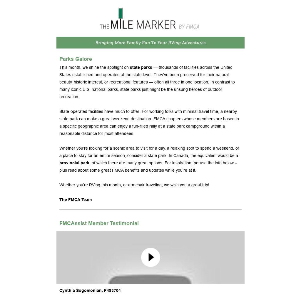 State-operated facilities have much to offer. For working folks with minimal travel time, a nearby state park can make a great weekend destination. FMCA chapters whose members are based in a specific geographic area can enjoy a fun-filled rally at a state park campground within a reasonable distance for most attendees.