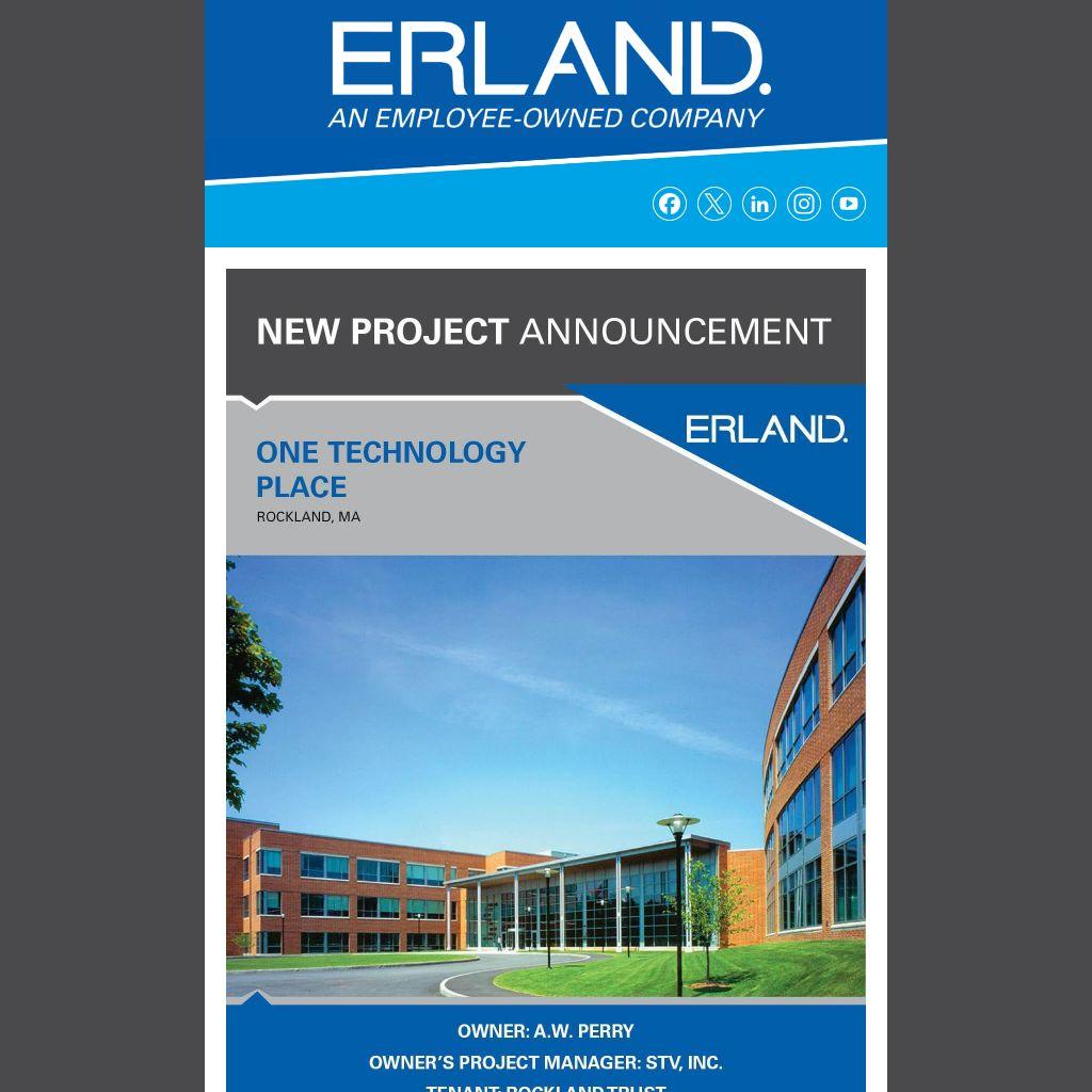 Erland has been selected by A.W. Perry, in partnership with STV, to lead the full-scale transformation of One Technology Place—a premier Class A suburban office building situated on a 22-acre campus that spans the towns of Rockland and Hingham. Thoughtfully designed for modern business needs, One Tech features flexible floor plates, on-site wellness-focused amenities which include a full-service café, fitness and yoga studios, nature trails, and an open-air patio that encourages both productivity and community. This exciting redevelopment project includes a comprehensive base building renovation with upgraded building systems, enhanced entryways, common areas, and amenity spaces, as well as the strategic demising of unoccupied space to attract new tenants and drive leasing activity to the remaining 60,000 SF available for lease.