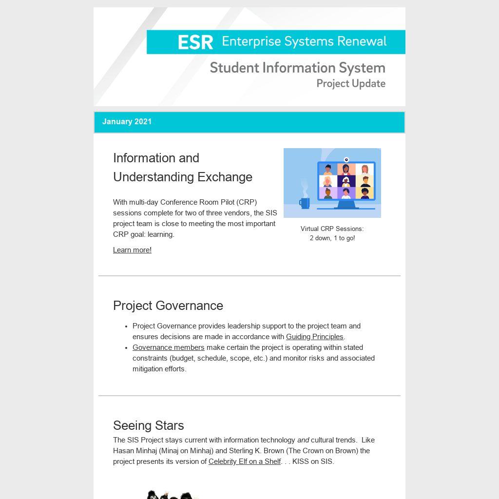 The Student Information System project is part of the UC San Diego Enterprise Systems Renewal (ESR) program.