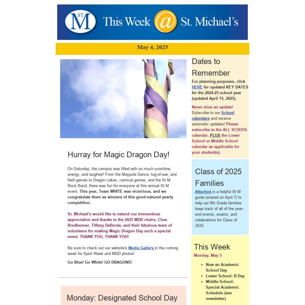 St. Michael's would like to extend our tremendous appreciation and thanks to the 2025 MDD chairs, Chas Bredbenner, Tiffany DeBorde, and their fabulous team of volunteers for making Magic Dragon Day such a special event. THANK YOU, THANK YOU!
