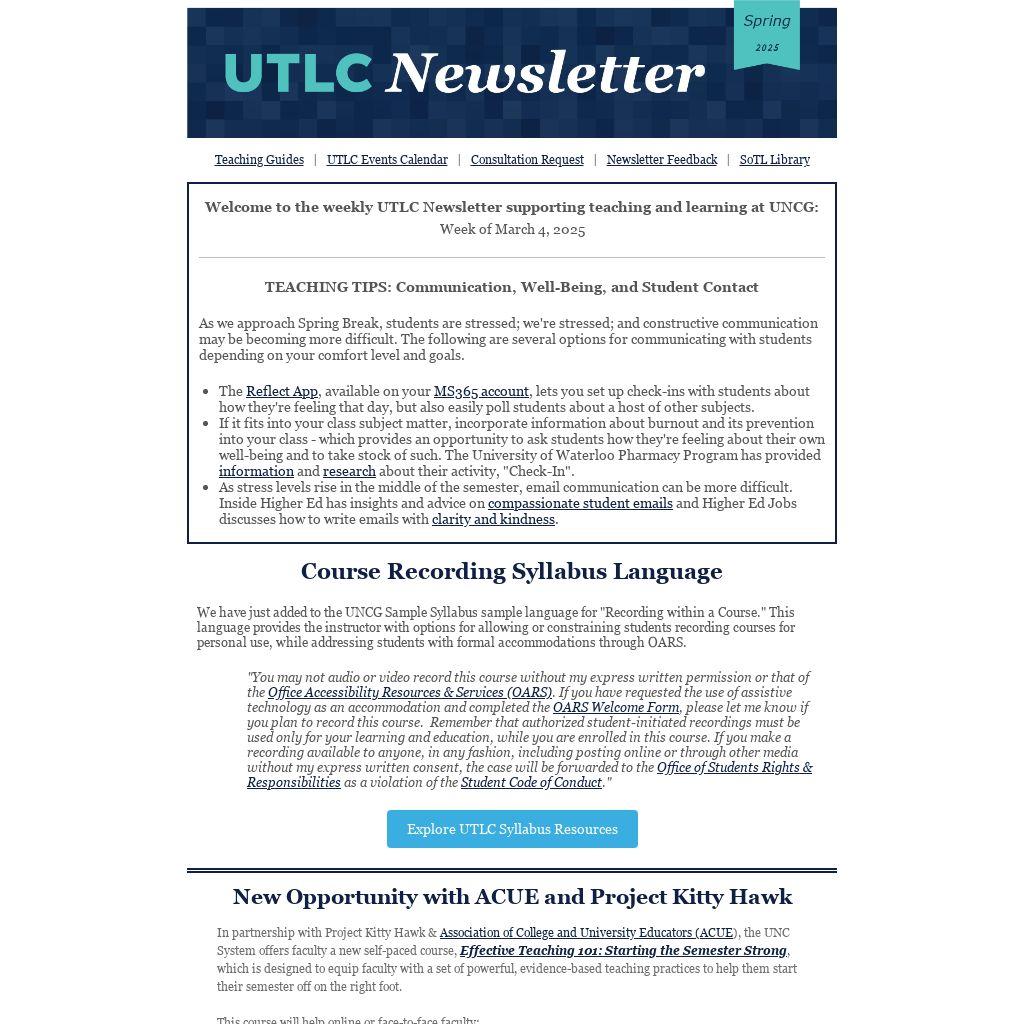 Welcome to the weekly UTLC Newsletter supporting teaching and learning at UNCG:
