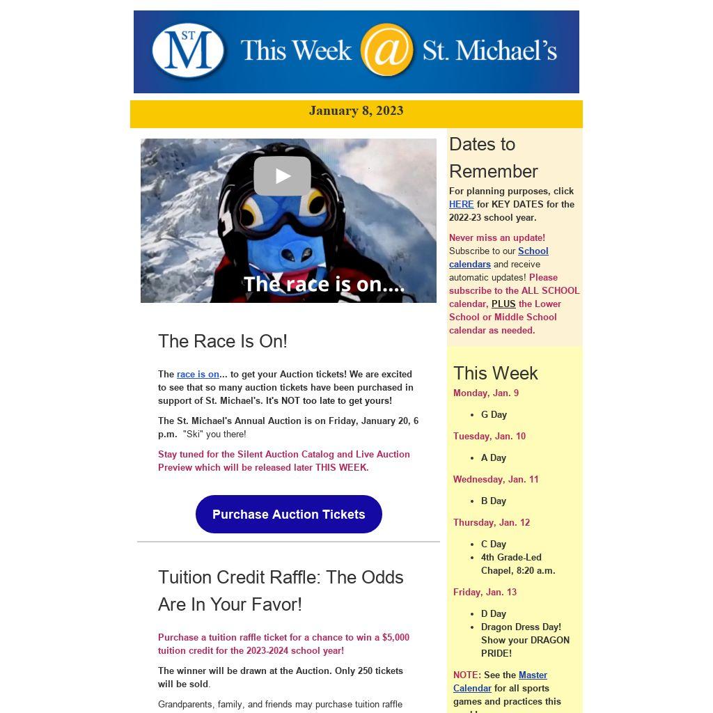 The St. Michael's Annual Auction is on Friday, January 20, 6 p.m. "Ski" you there!
