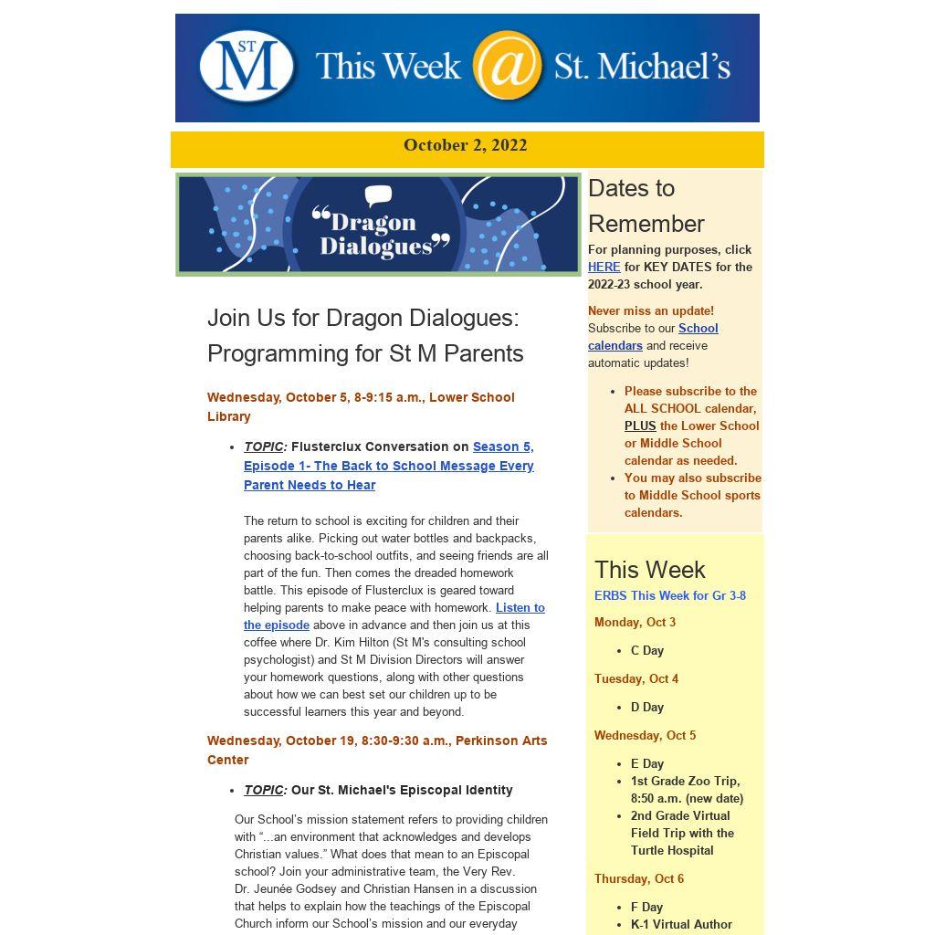 Current and past issues of "This Week at St. Michael's" are now archived on our website under "News and Events," as well as under "Community."