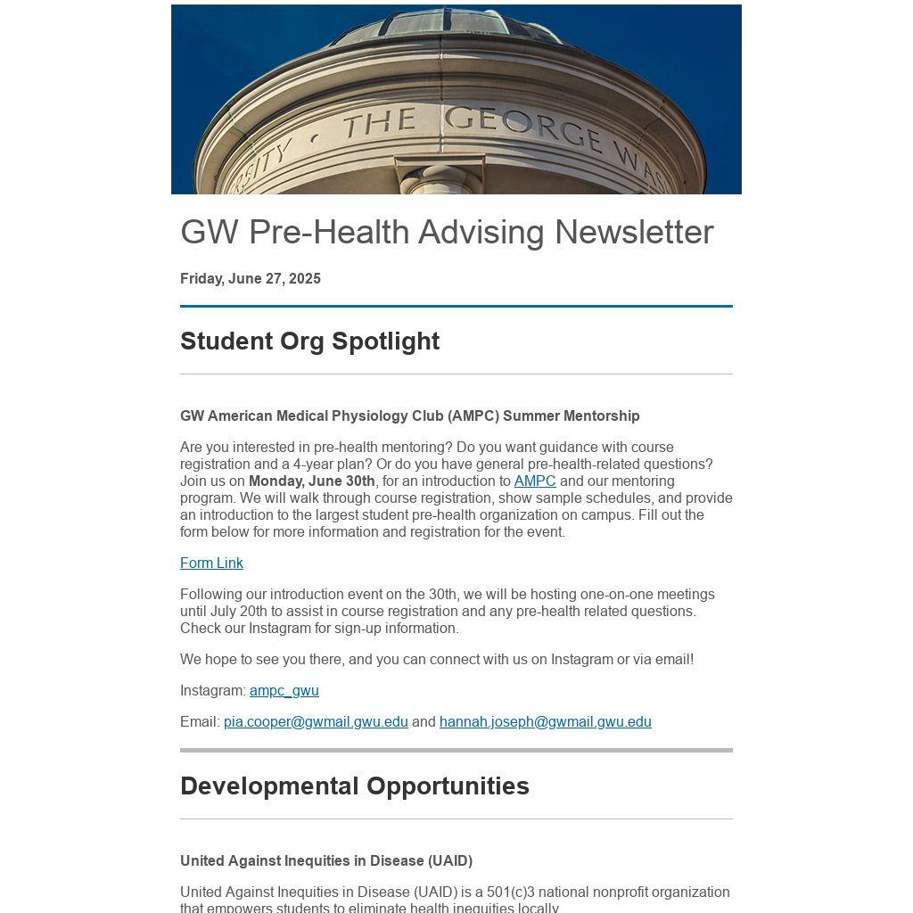 GW American Medical Physiology Club (AMPC) Summer Mentorship
