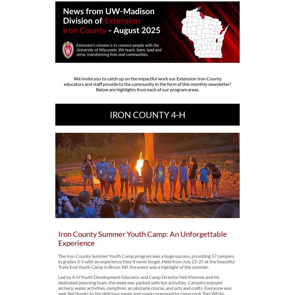 We invite you to catch up on the impactful work our Extension Iron County educators and staff provide to the community in the form of this monthly newsletter! Below are highlights from each of our program areas.