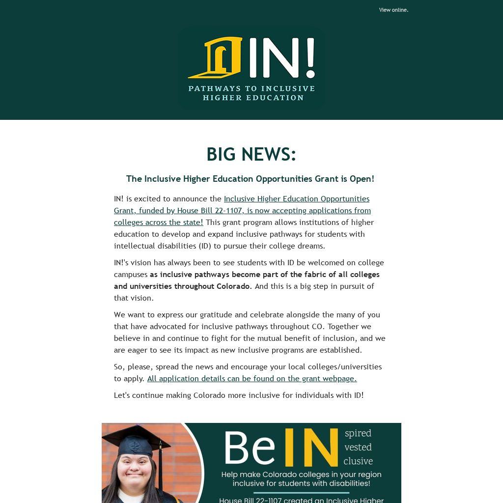 IN!'s vision has always been to see students with ID be welcomed on college campuses as inclusive pathways become part of the fabric of all colleges and universities throughout Colorado. And this is a big step in pursuit of that vision.