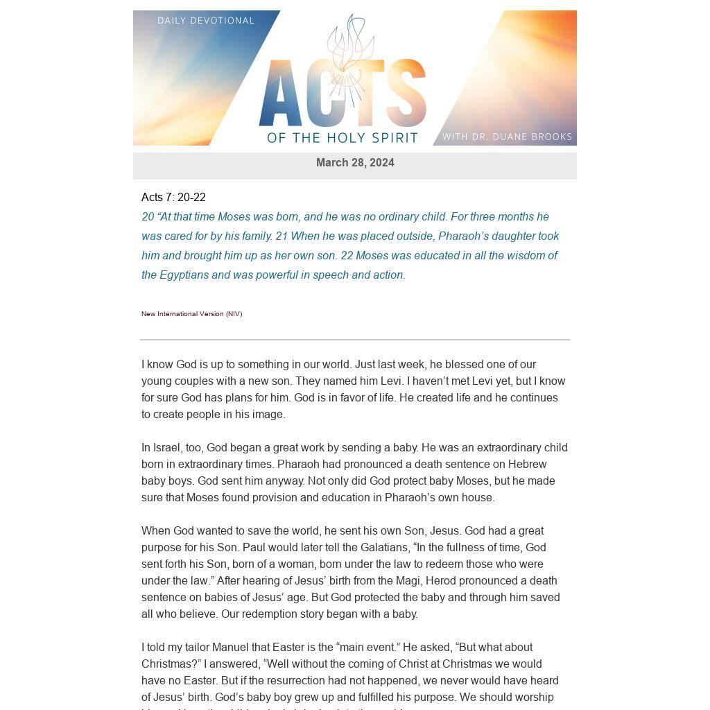 In Israel, too, God began a great work by sending a baby. He was an extraordinary child born in extraordinary times. Pharaoh had pronounced a death sentence on Hebrew baby boys. God sent him anyway. Not only did God protect baby Moses, but he made sure that Moses found provision and education in Pharaoh’s own house.