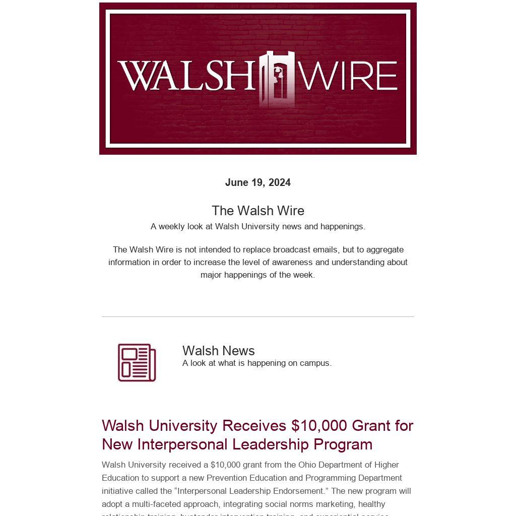 The Walsh Wire is not intended to replace broadcast emails, but to aggregate information in order to increase the level of awareness and understanding about major happenings of the week.