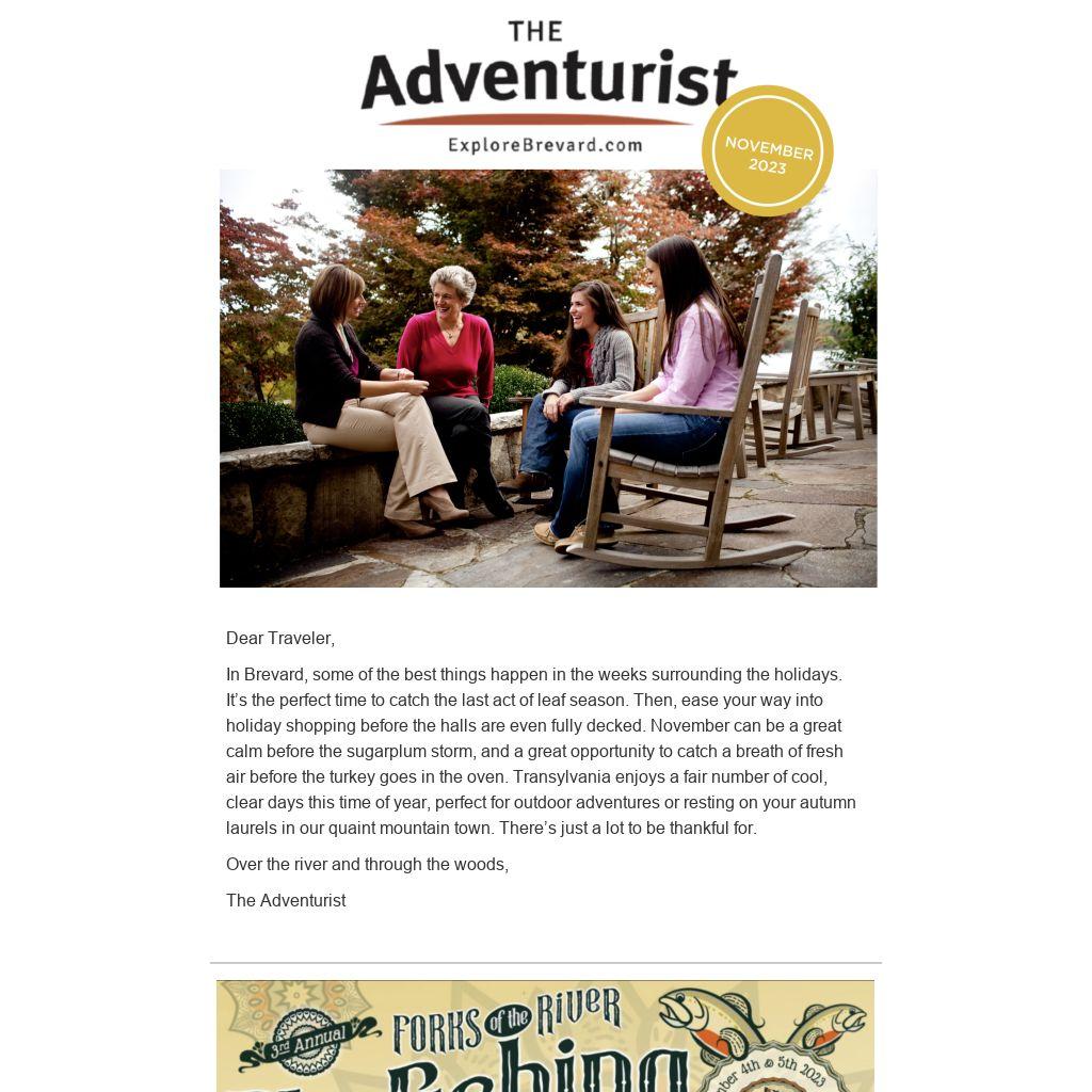 In Brevard, some of the best things happen in the weeks surrounding the holidays. It’s the perfect time to catch the last act of leaf season. Then, ease your way into holiday shopping before the halls are even fully decked. November can be a great calm before the sugarplum storm, and a great opportunity to catch a breath of fresh air before the turkey goes in the oven. Transylvania enjoys a fair number of cool, clear days this time of year, perfect for outdoor adventures or resting on your autumn laurels in our quaint mountain town. There’s just a lot to be thankful for.