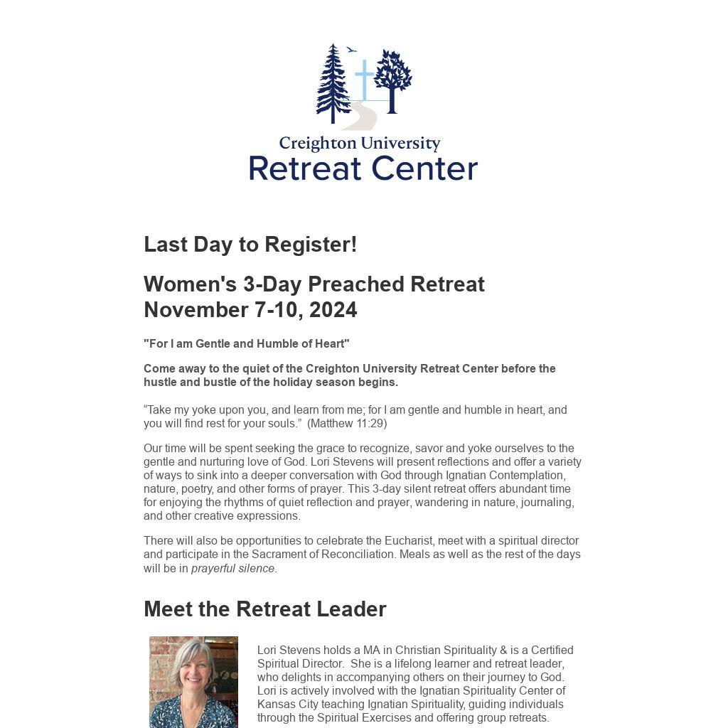 Come away to the quiet of the Creighton University Retreat Center before the hustle and bustle of the holiday season begins.