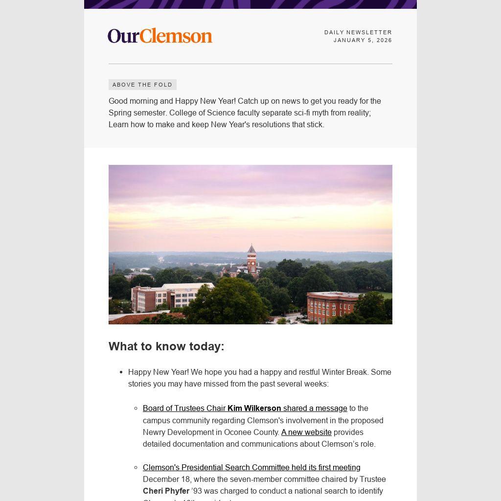Good morning and Happy New Year! Catch up on news to get you ready for the Spring semester. College of Science faculty separate sci-fi myth from reality; Learn how to make and keep New Year's resolutions that stick.