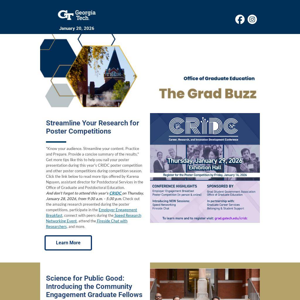And don't forget to attend this year's CRIDC on Thursday, January 28, 2026, from 9:30 a.m. - 5:30 p.m. Check out the amazing research presented during the poster competitions, participate in the Employer Engagement Breakfast, connect with peers during the Speed Research Networking Event, attend the Fireside Chat with Researchers, and more.