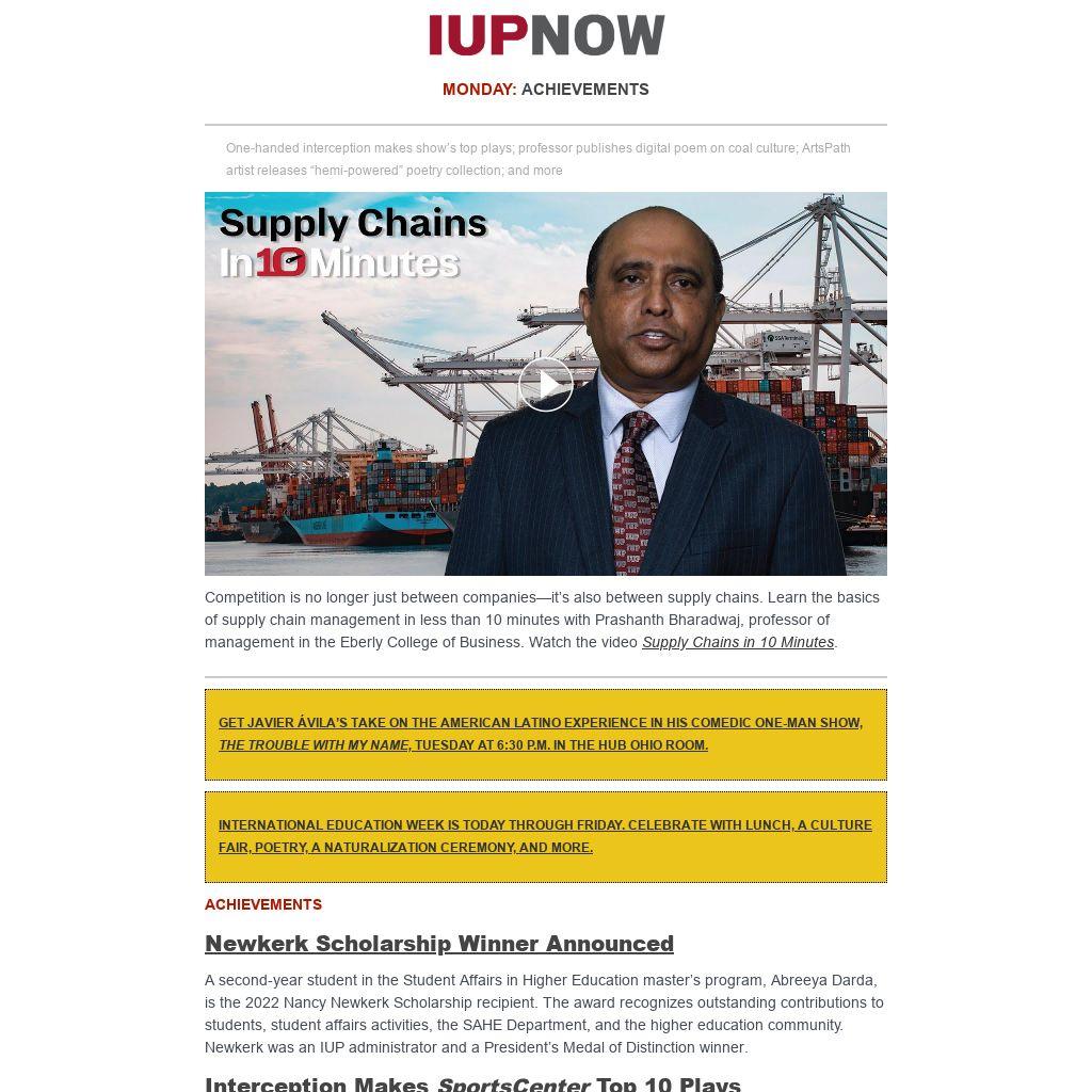 A second-year student in the Student Affairs in Higher Education master’s program, Abreeya Darda, is the 2022 Nancy Newkerk Scholarship recipient. The award recognizes outstanding contributions to students, student affairs activities, the SAHE Department, and the higher education community. Newkerk was an IUP administrator and a President’s Medal of Distinction winner.