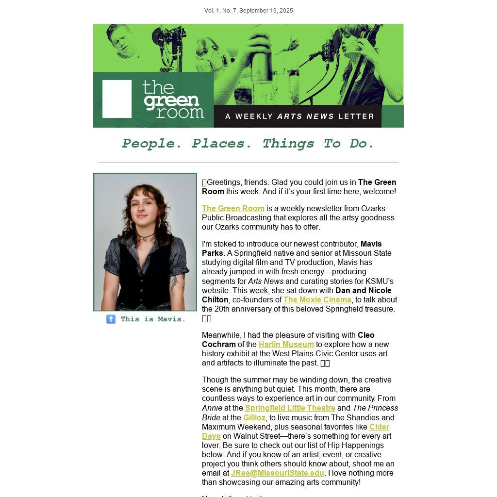 The Green Room is a weekly newsletter from Ozarks Public Broadcasting that explores all the artsy goodness our Ozarks community has to offer.