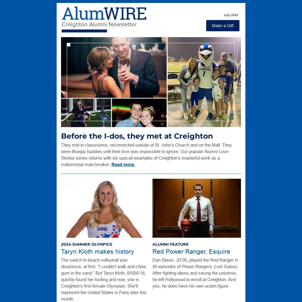 They met in classrooms, reconnected outside of St. John’s Church and on the Mall. They were Bluejay buddies until their love was impossible to ignore. Our popular Alumni Love Stories series returns with six special examples of Creighton’s masterful work as a matrimonial matchmaker. Read more.