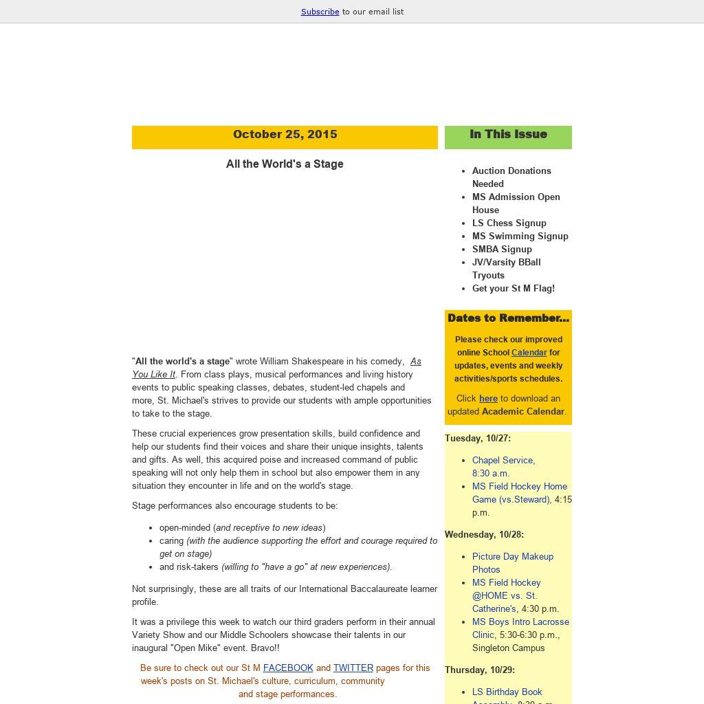 Get connected to keep abreast of St M news, events, calendar changes and information. Current and past issues of "This Week at St. Michael's" are now archived on our website under "News and Events," as well as under "Community."