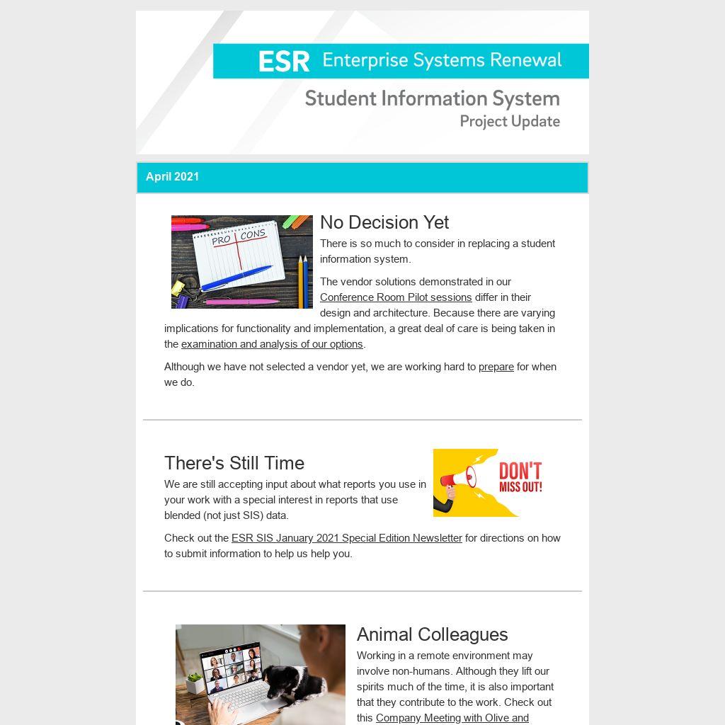 The Student Information System project is part of the UC San Diego Enterprise Systems Renewal (ESR) program.