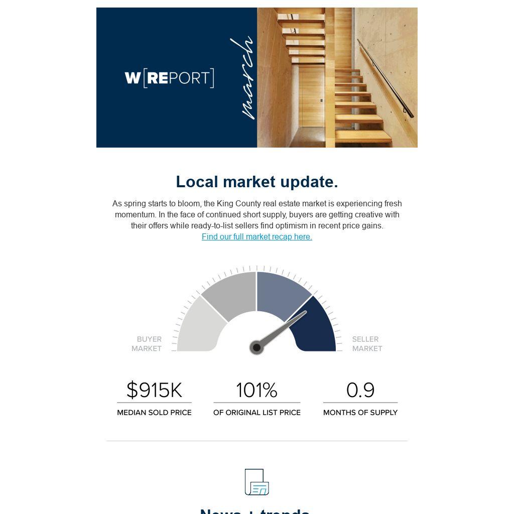 As spring starts to bloom, the King County real estate market is experiencing fresh momentum. In the face of continued short supply, buyers are getting creative with their offers while ready-to-list sellers find optimism in recent price gains. Find our full market recap here.