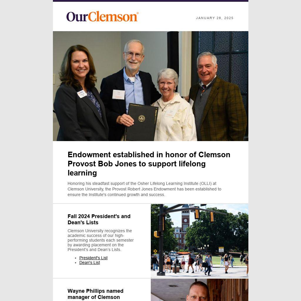 Honoring his steadfast support of the Osher Lifelong Learning Institute (OLLI) at Clemson University, the Provost Robert Jones Endowment has been established to ensure the Institute's continued growth and success.
