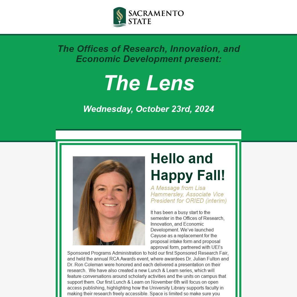 Hello and Happy Fall!A Message from Lisa Hammersley, Associate Vice President for ORIED (interim)