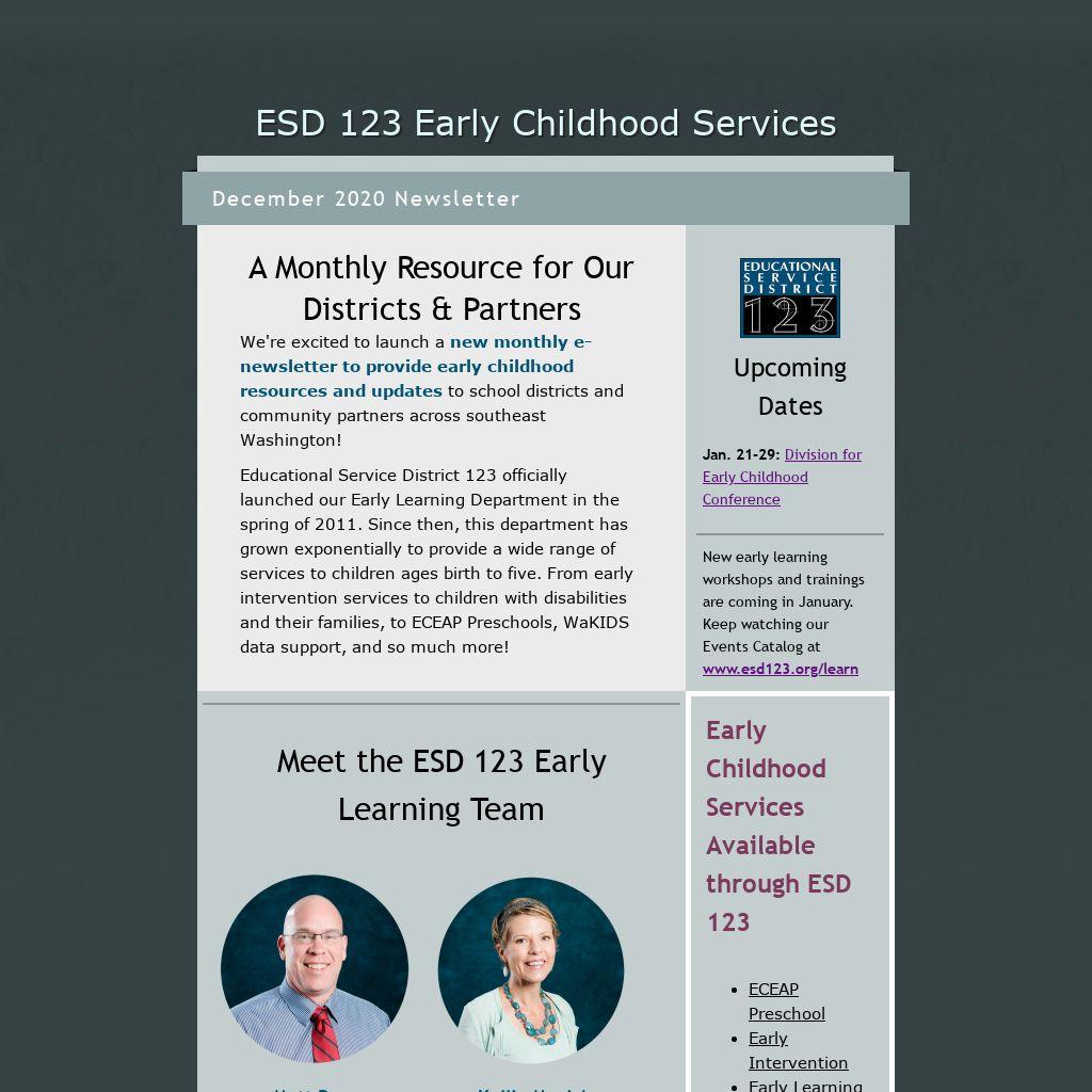 We're excited to launch a new monthly e-newsletter to provide early childhood resources and updates to school districts and community partners across southeast Washington!