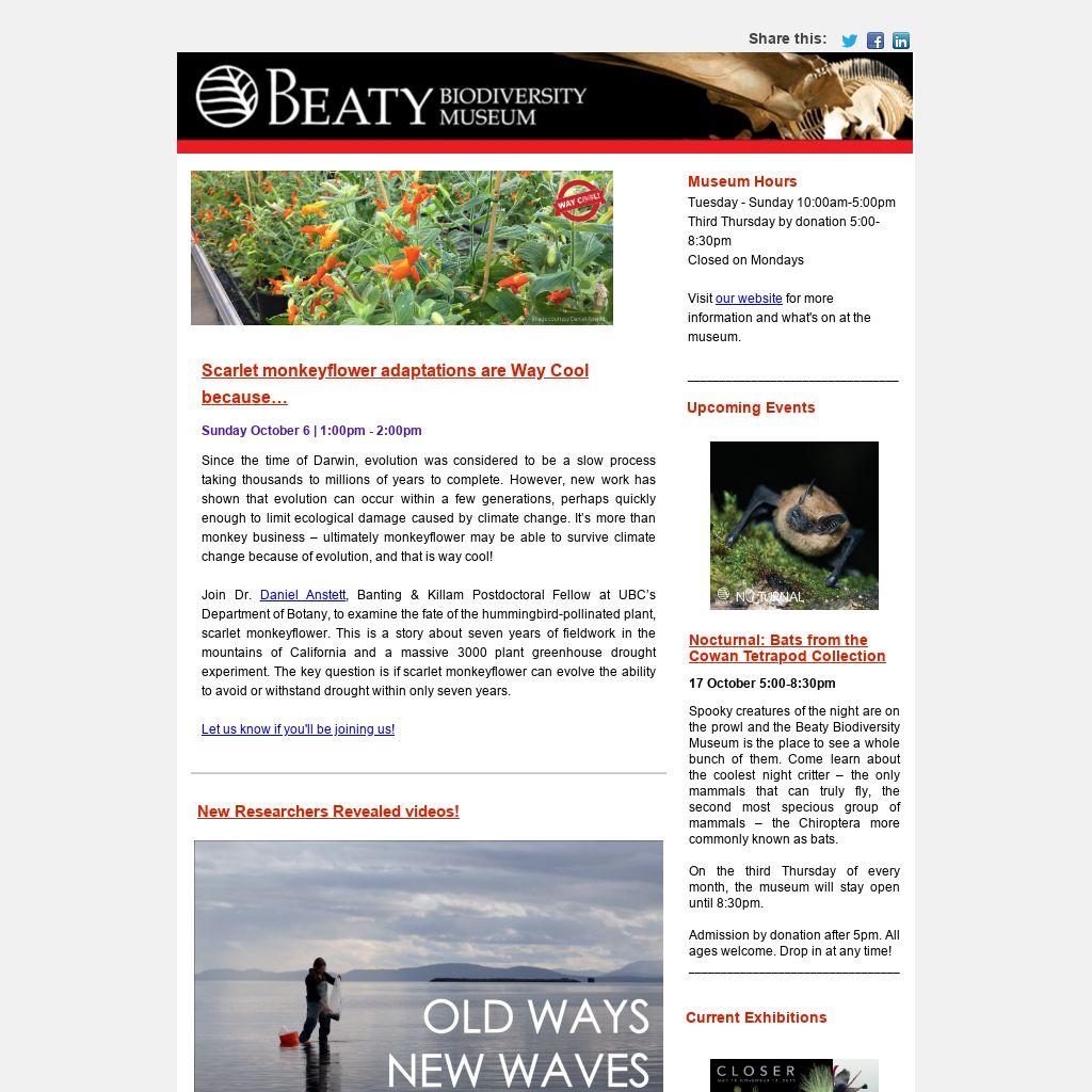 Come to the Beaty Biodiversity Museum for a professional development day and learn how we can support your lessons with curriculum links in our exhibits, activities, and programs. Register for free here!