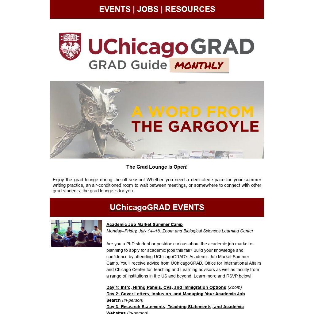 Are you a PhD student or postdoc curious about the academic job market or planning to apply for academic jobs this fall? Build your knowledge and confidence by attending UChicagoGRAD’s Academic Job Market Summer Camp. You’ll receive advice from UChicagoGRAD, Office for International Affairs and Chicago Center for Teaching and Learning advisors as well as faculty from a range of institutions in the US and beyond. Learn more and RSVP below!