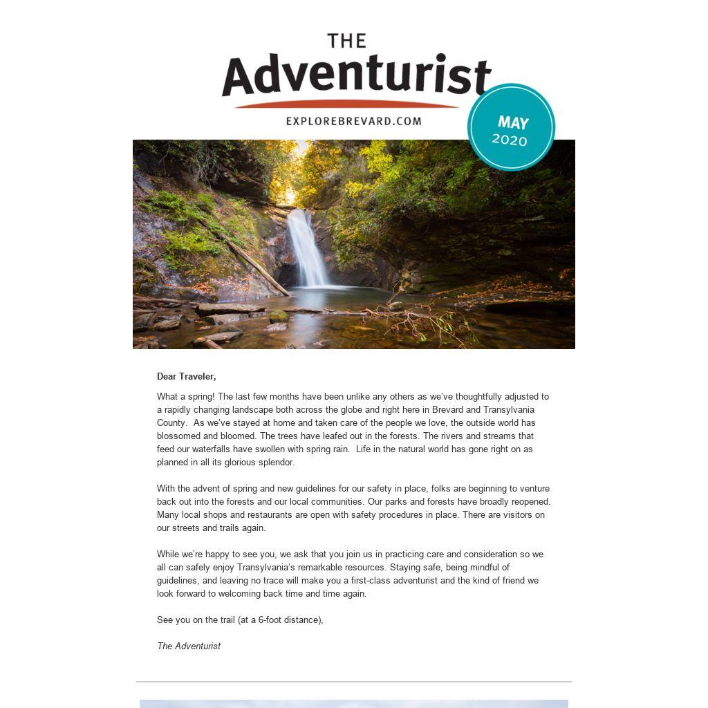 What a spring! The last few months have been unlike any others as we’ve thoughtfully adjusted to a rapidly changing landscape both across the globe and right here in Brevard and Transylvania County. As we’ve stayed at home and taken care of the people we love, the outside world has blossomed and bloomed. The trees have leafed out in the forests. The rivers and streams that feed our waterfalls have swollen with spring rain. Life in the natural world has gone right on as planned in all its glorious splendor.