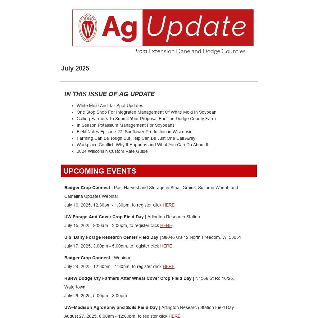 Badger Crop Connect | Webinar July 24, 2025, 12:30pm - 1:30pm, to register click HERE