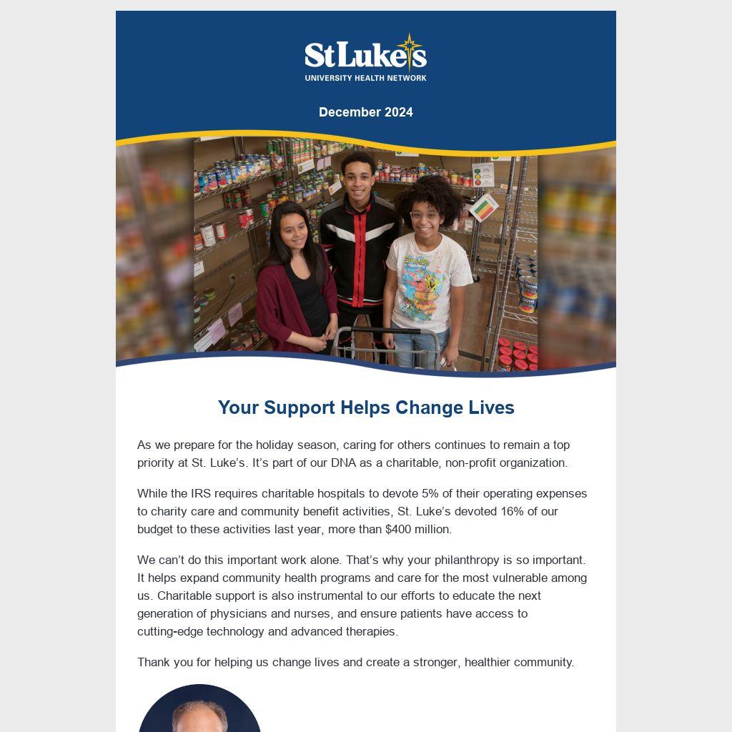 “When Jean and I were considering which organizations to philanthropically support, St. Luke’s kept surfacing to the top of our list. We are pleased to join in their mission to provide the best care and service to the youngest members of our community,” says St. Luke’s donor Mike Grabarits.