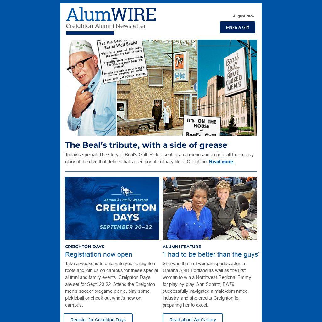Today’s special: The story of Beal’s Grill. Pick a seat, grab a menu and dig into all the greasy glory of the dive that defined half a century of culinary life at Creighton. Read more.