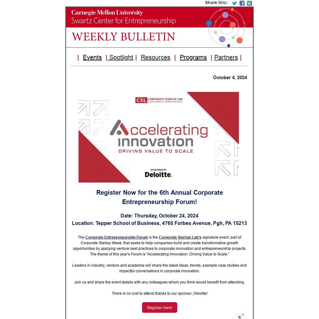 Register Now for the 6th Annual Corporate Entrepreneurship Forum!