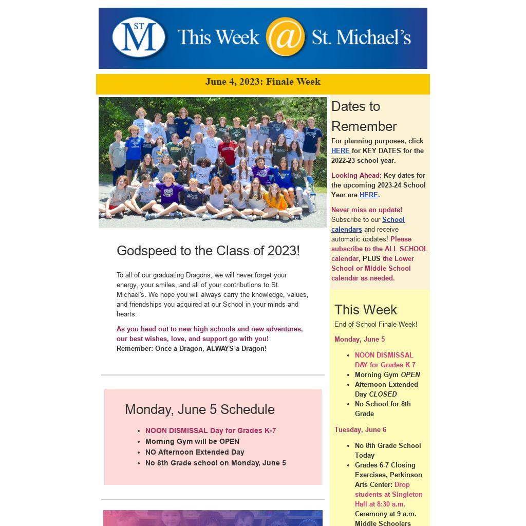 To all of our graduating Dragons, we will never forget your energy, your smiles, and all of your contributions to St. Michael's. We hope you will always carry the knowledge, values, and friendships you acquired at our School in your minds and hearts.