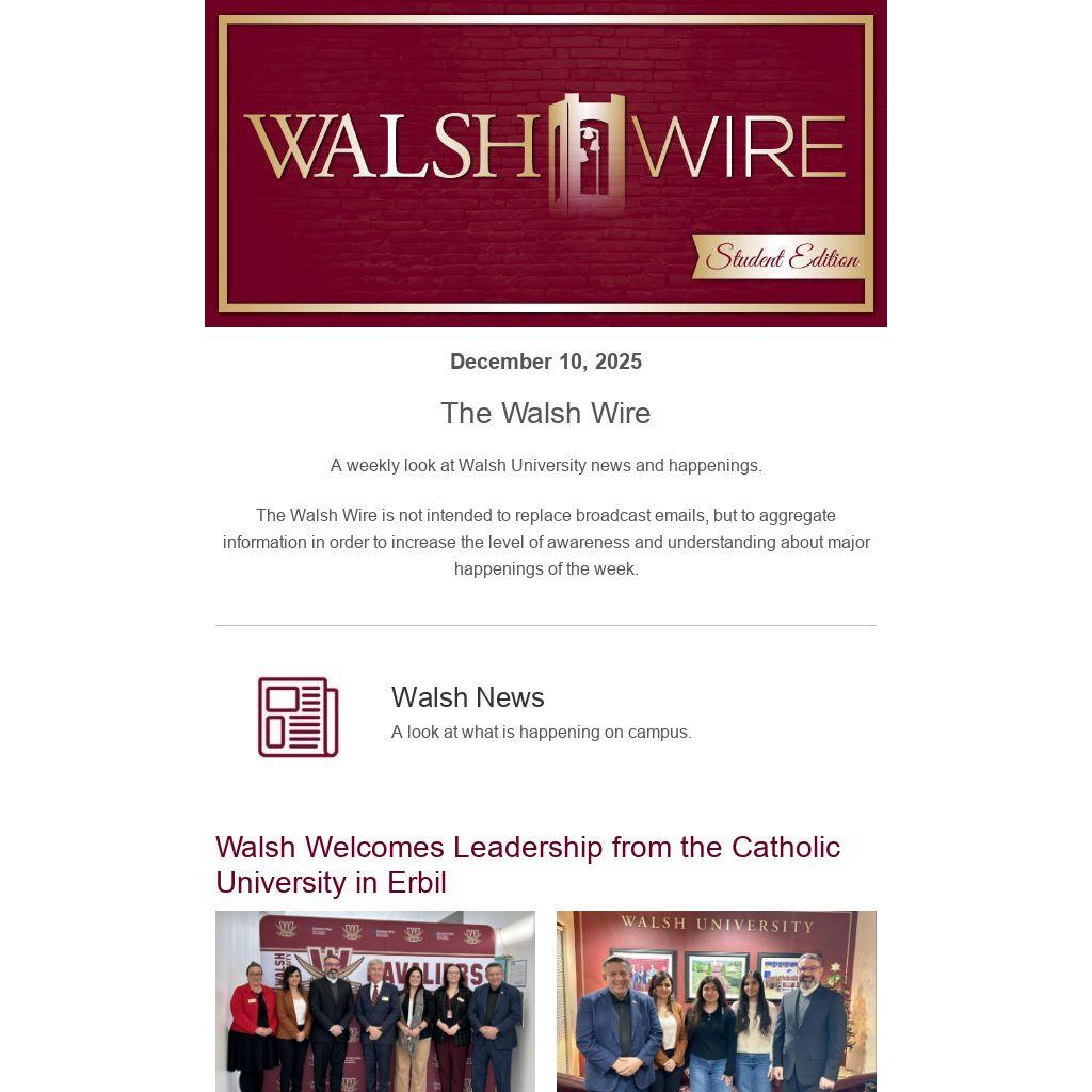 A weekly look at Walsh University news and happenings.