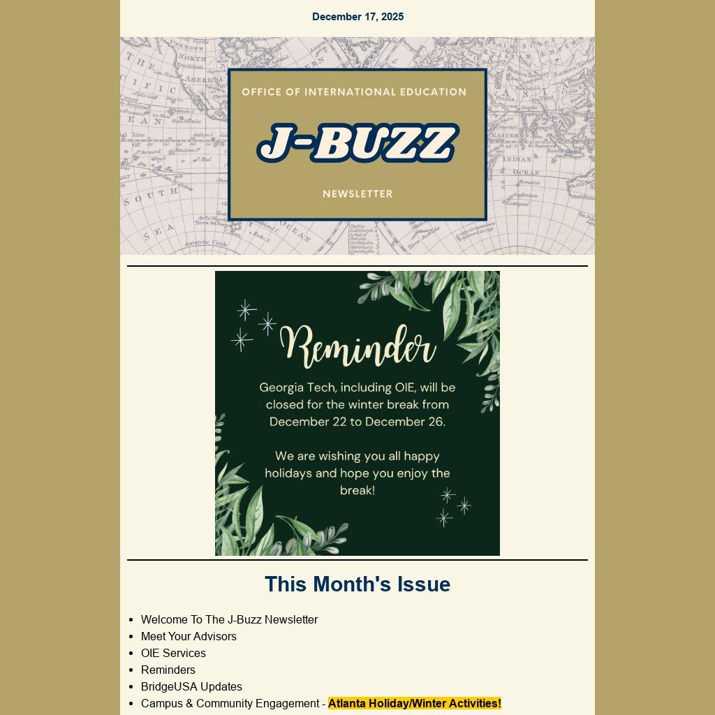 Welcome to the Office of International Education (OIE) “J-Buzz” monthly newsletter! OIE is thrilled to provide a dedicated space for participants in the BridgeUSA program.