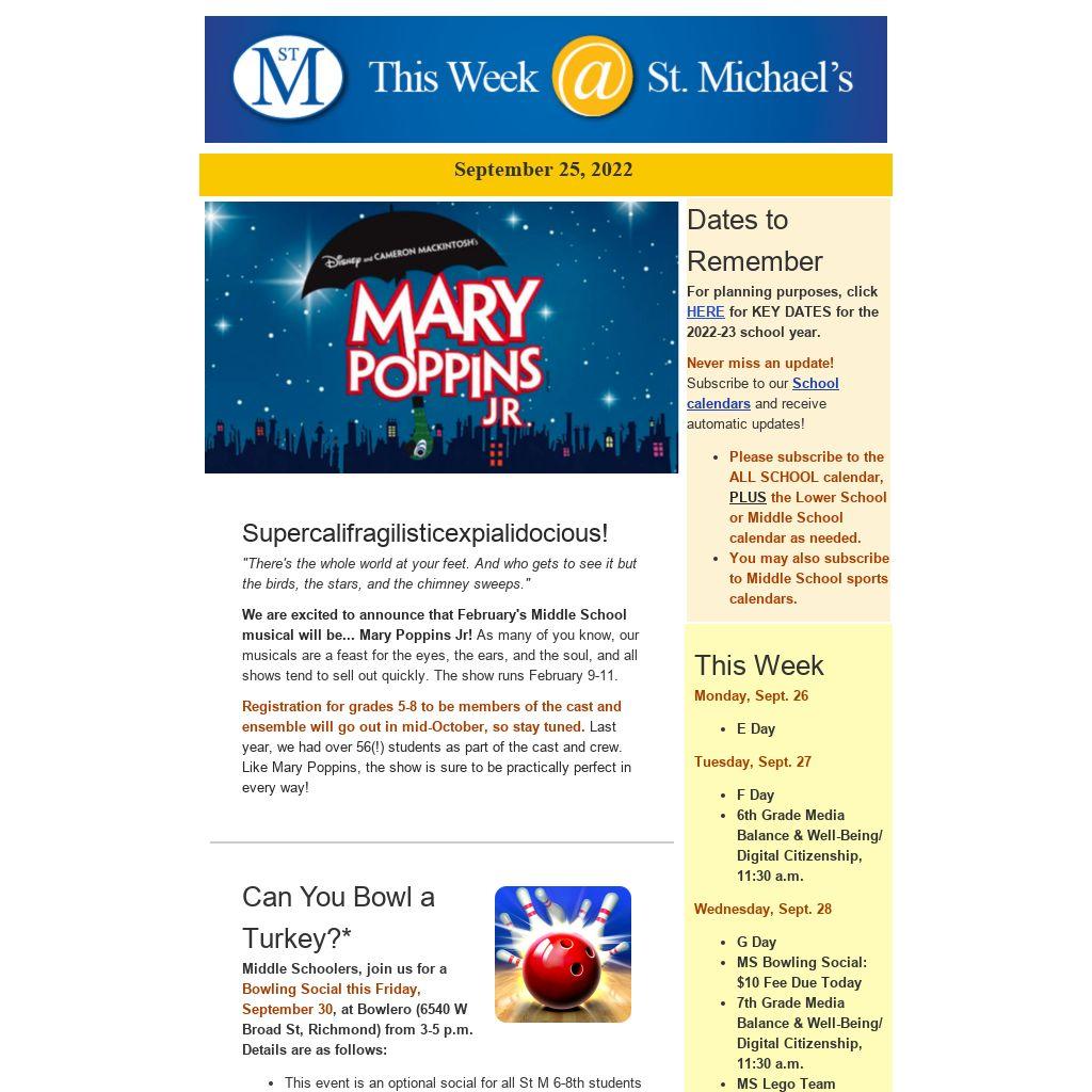 Current and past issues of "This Week at St. Michael's" are now archived on our website under "News and Events," as well as under "Community."