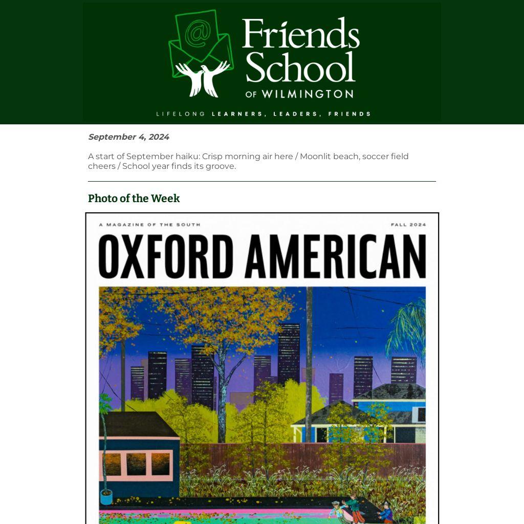Middle School Language Arts teacher, Kaylie Saidin, was recently published in the Fall 2024 issue of Oxford American--a quarterly magazine that focuses on the American South. Through the lens of a shared living space and the presence of a mysterious toad, Kaylie's short story, "The Frogs," explores the transition from college life to adulthood and the search for meaning in mundane moments. Congratulations, Kaylie! What an incredible achievement and testament to your craft as a teacher and writer. Yet another publication to add to your ever-growing CV! (Please note: Some of the language and themes discussed in this story are not appropriate for young children).