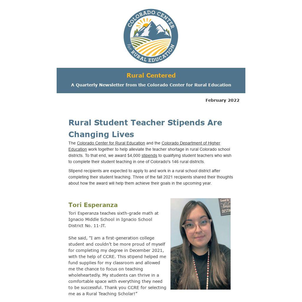 A Quarterly Newsletter from the Colorado Center for Rural Education