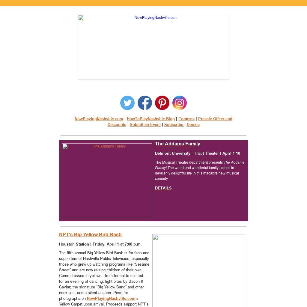 - NPT Presents: Dailey & Vincent w/ Nashville Symphony (Tue, 04/12) Schermerhorn Symphony Center includes Meet-and-Greets