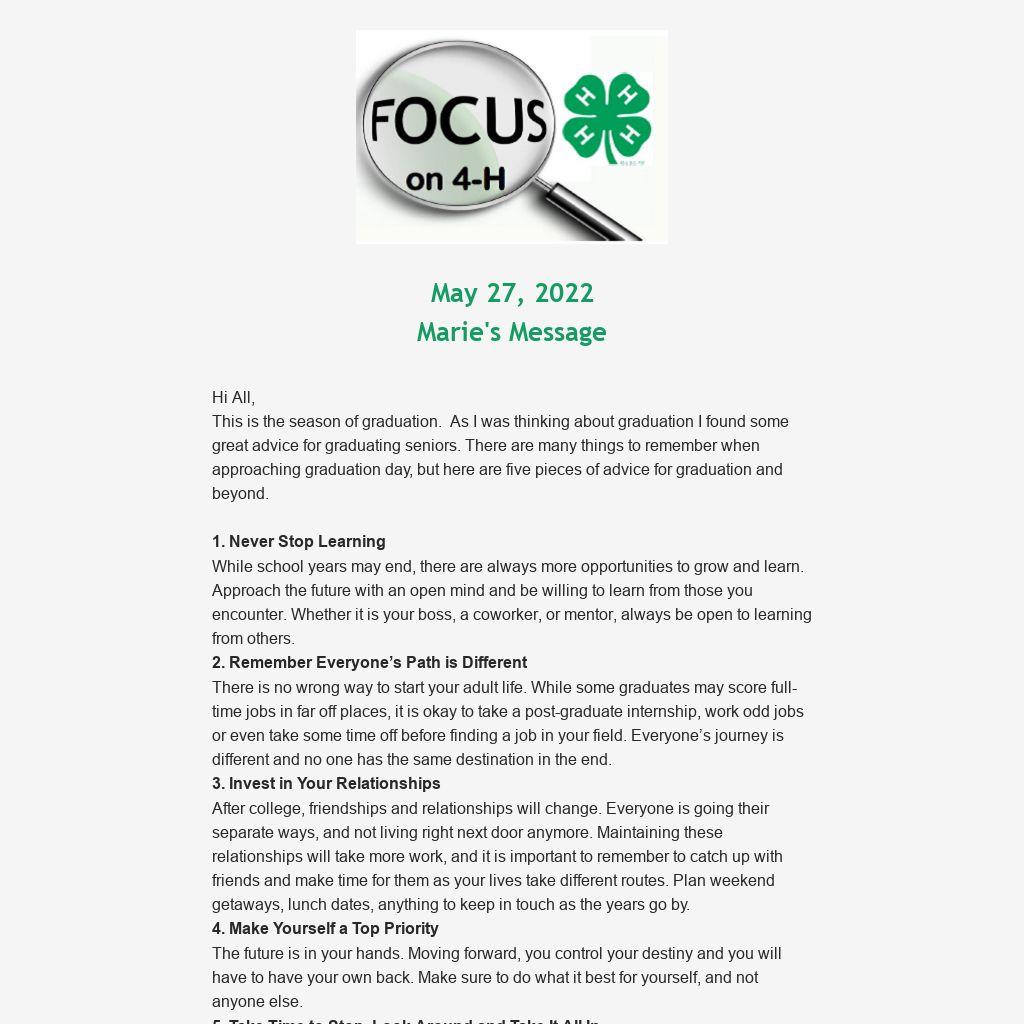 May 27, 2022Marie's Message
