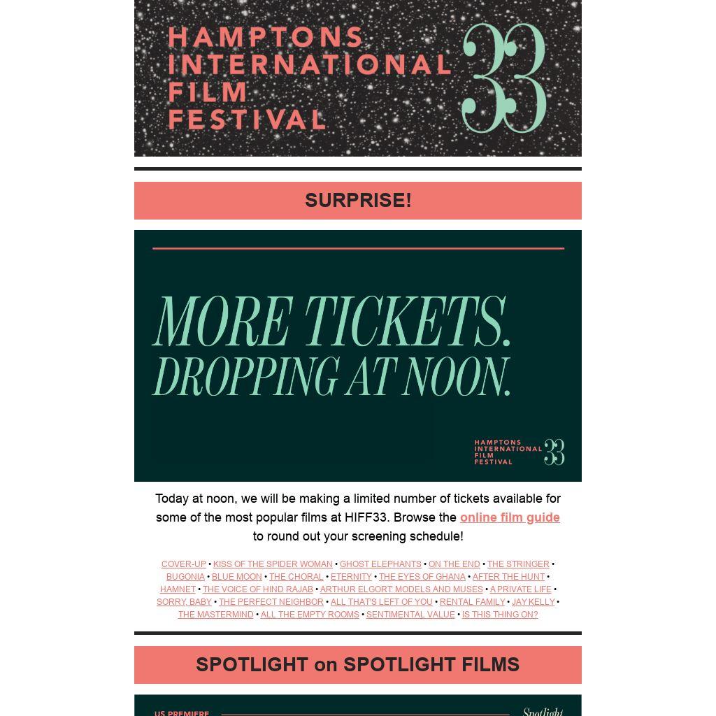 Today at noon, we will be making a limited number of tickets available for some of the most popular films at HIFF33. Browse the online film guide to round out your screening schedule!