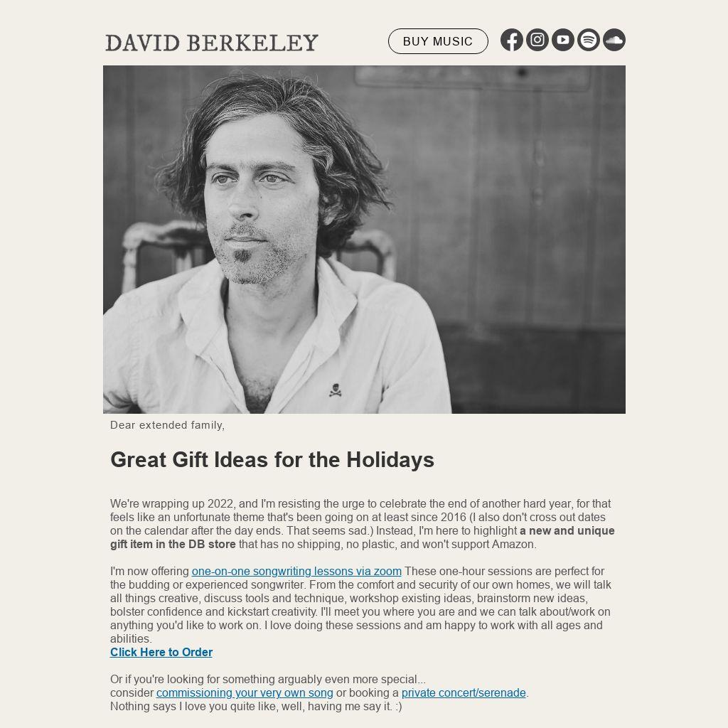 consider commissioning your very own song or booking a private concert/serenade. Nothing says I love you quite like, well, having me say it. :)