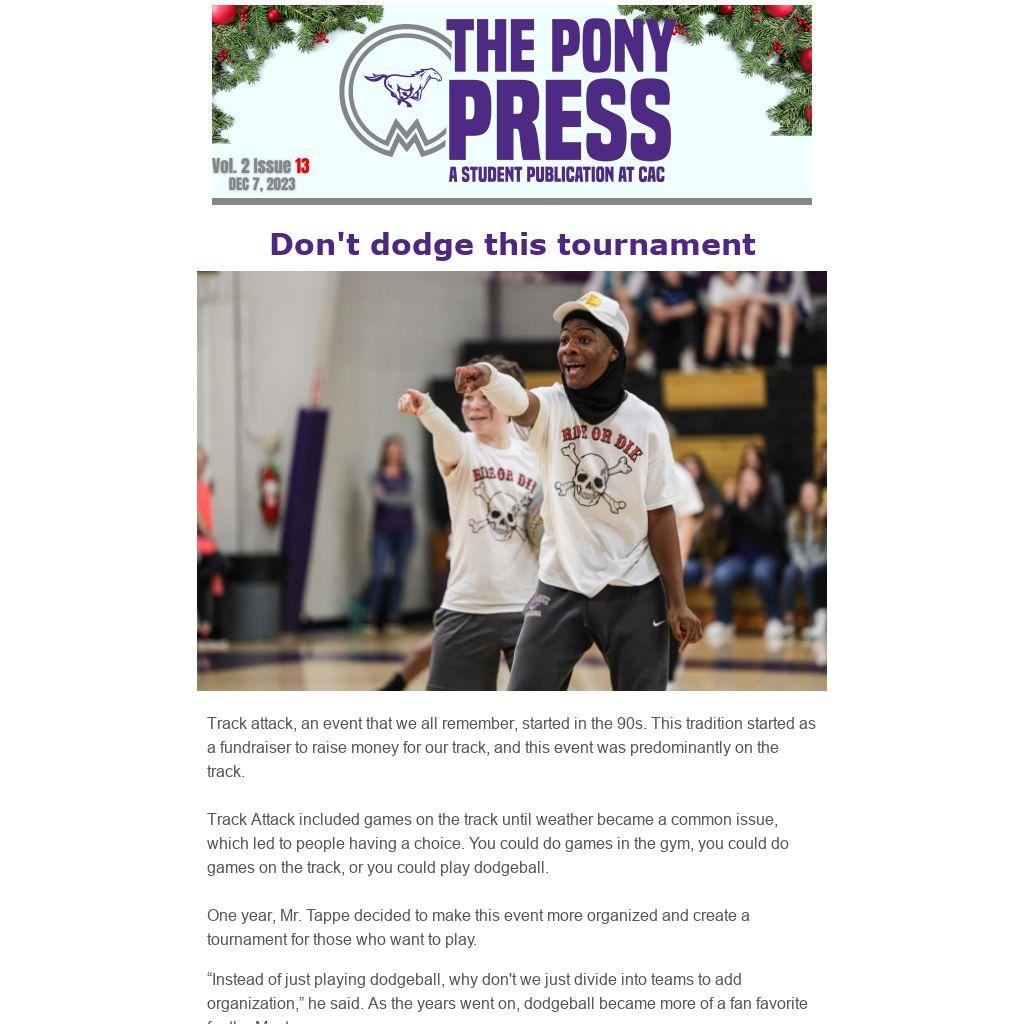 “Instead of just playing dodgeball, why don't we just divide into teams to add organization,” he said. As the years went on, dodgeball became more of a fan favorite for the Mustangs.